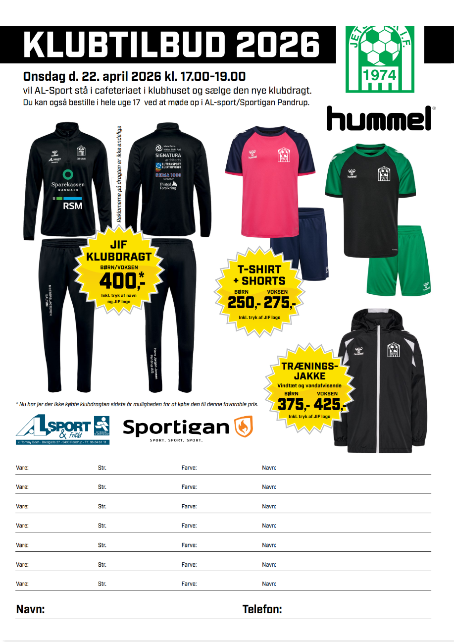 De gode tilbud på klubdragt og træningstøj er gældende for klubbens medlemmer, frivillige og trænere.